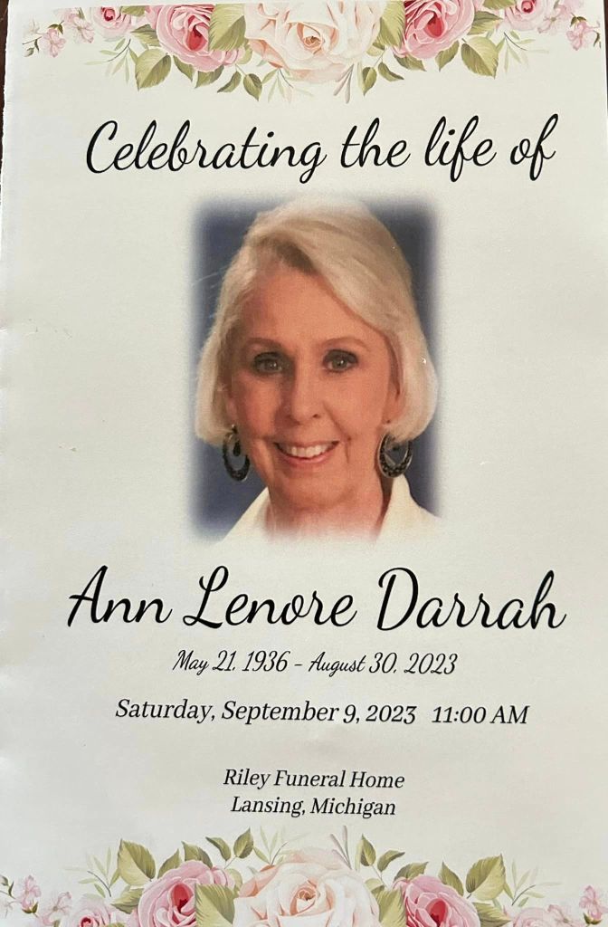 Some of the last words she heard on this earth were from Romans chapter 6, verse 23: “For the wages of sin is death, but the gift of God is eternal life in Christ Jesus our Lord.” Like us all, Grandma Ann was not perfect, but through her faith in Jesus, she has now been made perfect. Let us rejoice in knowing that she is at peace alongside Grandpa Jack, and in knowing that someday, we will see her again. For now, we can always hang on to that laugh, and all those beautiful moments we had with Ann Lenore.